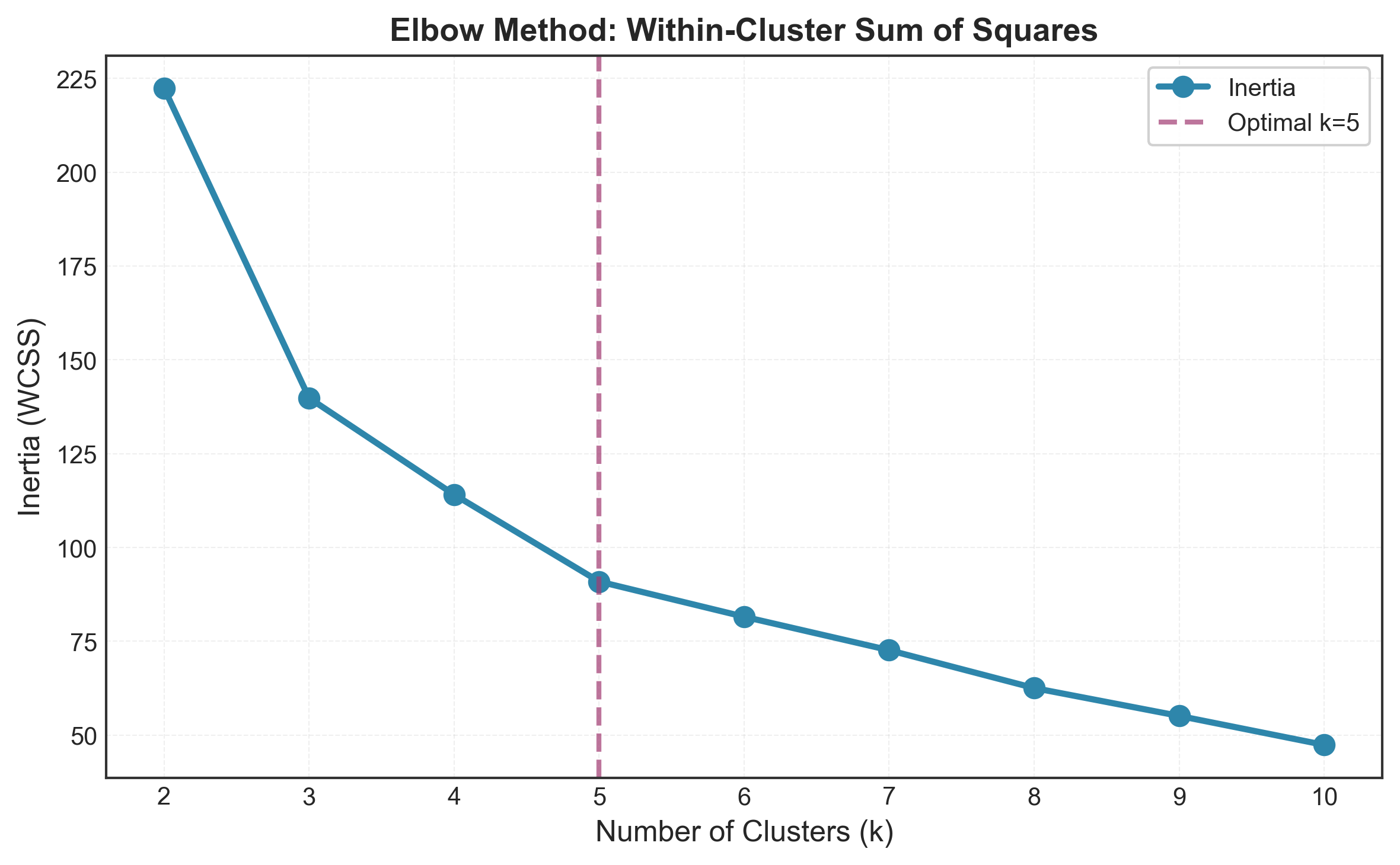 The Elbow Method is probably the most intuitive approach to finding optimal clusters. The idea is simple: as you increase the number of clusters, the Within-Cluster Sum of Squares (WCSS) naturally decreases. But at some point, the improvement becomes marginal - that’s your “elbow.”